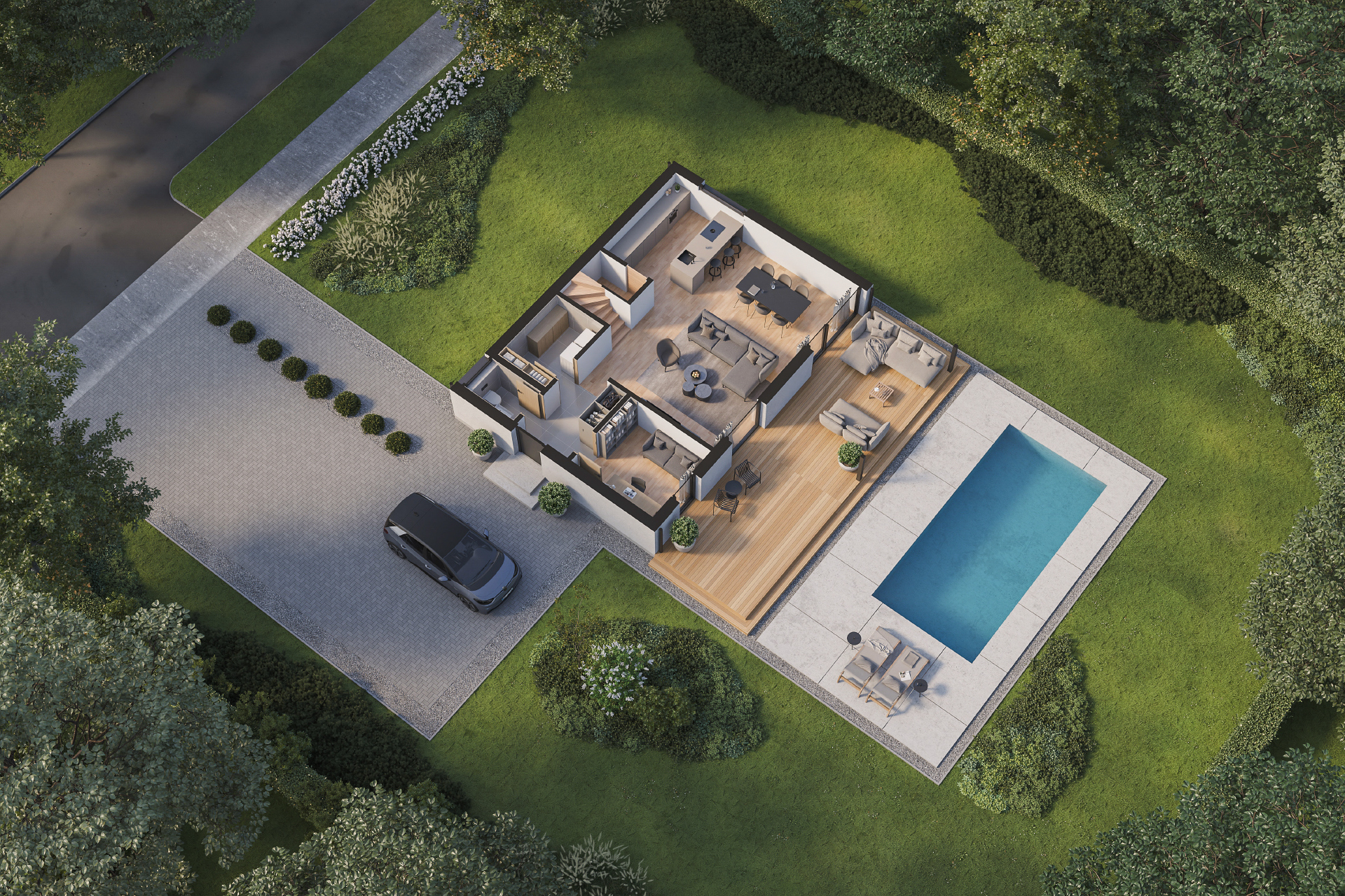 Kuća bez kompromisa. Arhitektonski dizajn prostorija pruža savršenu ravnotežu između udobnog stanovanja i funkcionalnosti. Kuća svojom iznimnom prostranošću stvara dojam da je mnogo veća nego što zapravo jest.